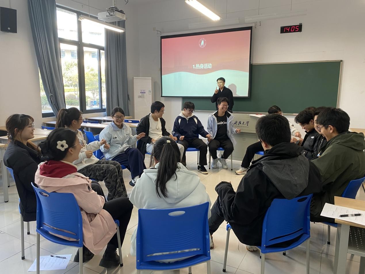 為幫助學(xué)生緩解學(xué)習(xí)與生活中的情緒壓力,學(xué)院特邀校心理健康中心王世凱老師開展了“情緒放松與解壓訓(xùn)練”團輔活動。活動以輕松的暖場游戲“抓烏鴉和烏龜”開場,同學(xué)們在笑聲與互動中迅速破冰,團隊氛圍活躍。隨后,學(xué)生通過“默聲生日排序”在無語言交流中建立默契與信任,中段環(huán)節(jié)的放松操與呼吸訓(xùn)練幫助大家釋放壓力、緩解緊張。整個團輔由動入靜、循序遞進,學(xué)生在互動體驗中感受情緒、學(xué)會調(diào)適,并在同伴支持下重塑自我認知,收獲自信與內(nèi)在平衡。